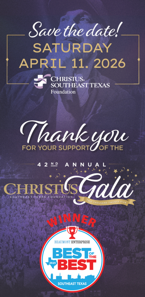 We can’t wait to welcome you to the 43rd Annual CHRISTUS Southeast Texas Gala on April 11, 2026, for another unforgettable night of celebration and giving.